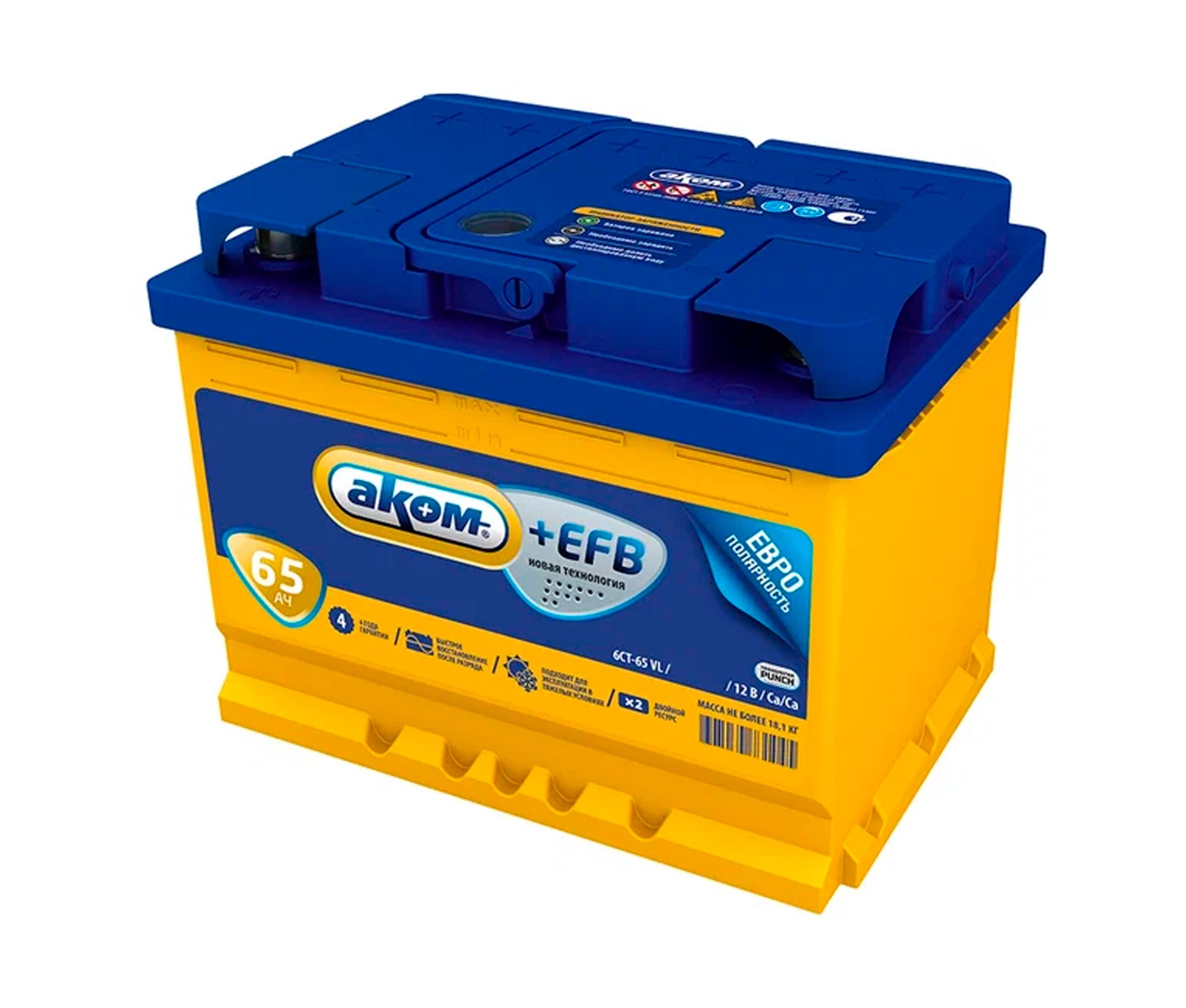 • Аккумулятор АКОМ+ EFB 65 а/ч п.п.